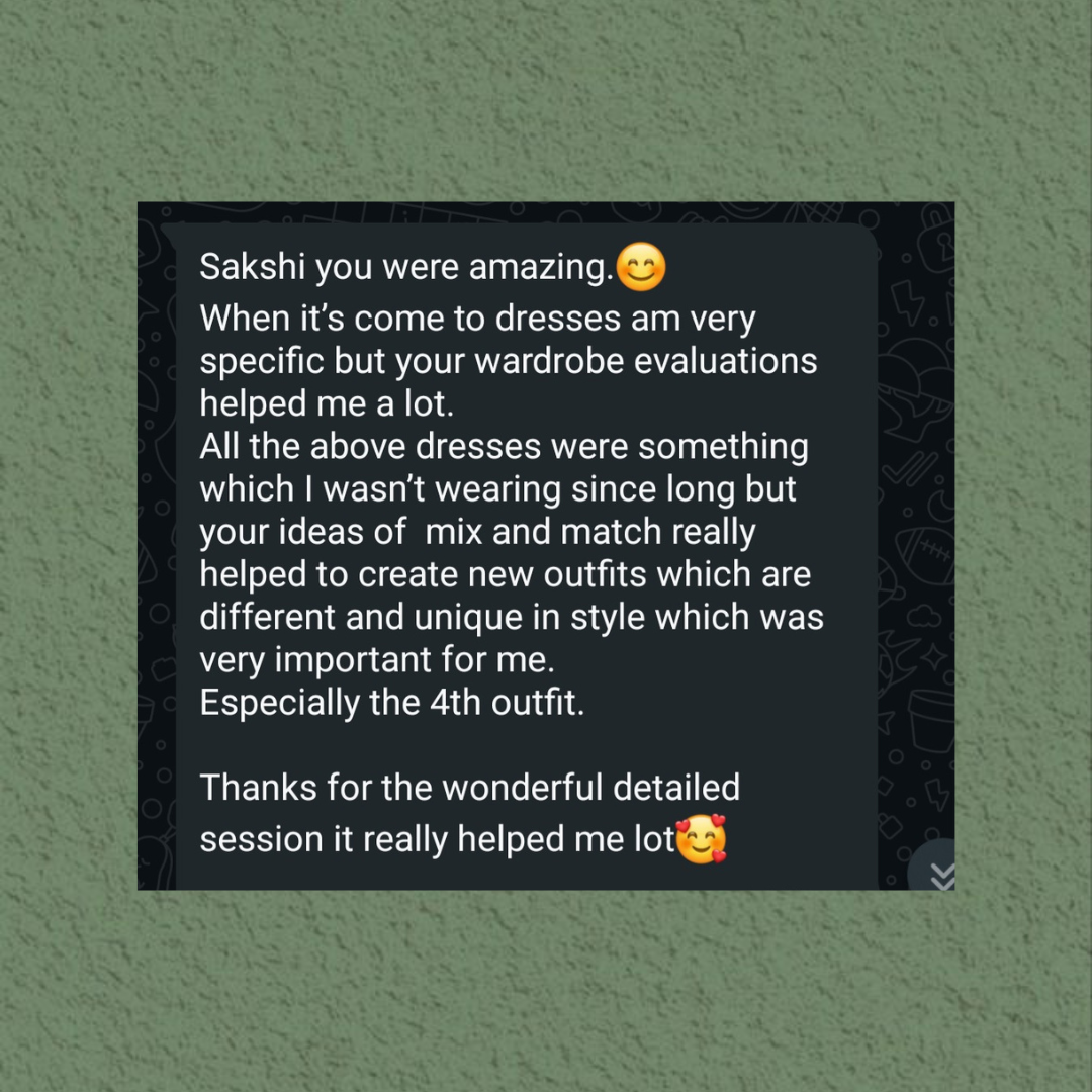 My approach goes beyond skin tone analysis. I study your facial features, body language, posture, and even your voice pitch and tone to reveal your true style personality. Based on this, I design colors that enhance your presence and silhouettes divided to suit your body shape and posture—so your look feels authentic, confident, and uniquely yours.